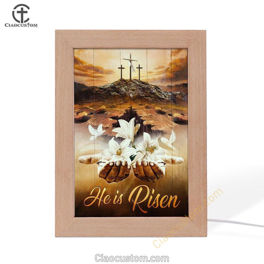 Jesus Hands White Lily Dove Cross He Is Risen Frame Lamp