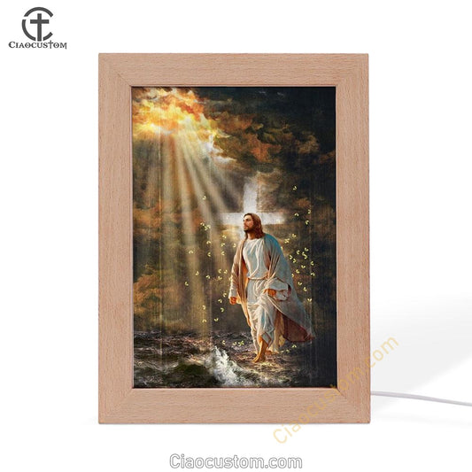 I Am With You Always Matthew 2820 Christian Jesus Christ Reaching Out His Hand Frame Lamp Prints - Bible Verse Wooden Lamp