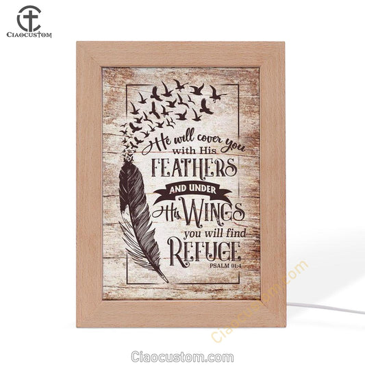 He Will Cover You With His Feathers Psalm 914 Bible Verse Wooden Lamp Art - Bible Verse Wooden Lamp - Scripture Night Light