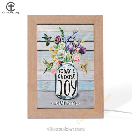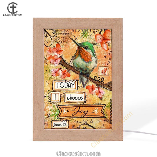 Hummingbird Flowers Today I Choose Joy Frame Lamp Prints - Bible Verse Wooden Lamp - Scripture Night Light