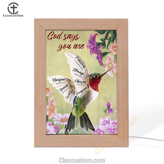 Hummingbird Painting Flowers God Says You Are Frame Lamp