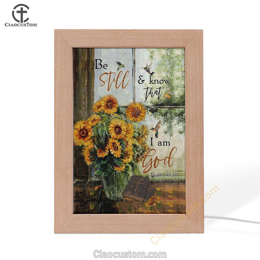 Hummingbird Sunflower Be Still And Know That I Am God Psalm 4610 Frame Lamp Prints - Bible Verse Wooden Lamp - Scripture Night Light