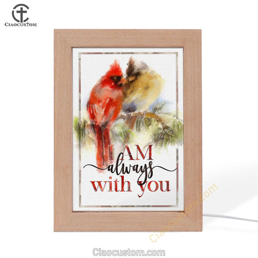 I Am Always With You Cardinal Christian Frame Lamp Prints - Bible Verse Wooden Lamp - Scripture Night Light