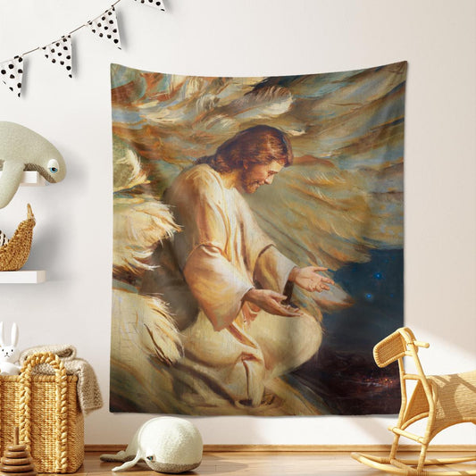 Abstract Art Saving Jesus Wings Feathers God Tapestry Jesus Tapestry Christian Tapestry