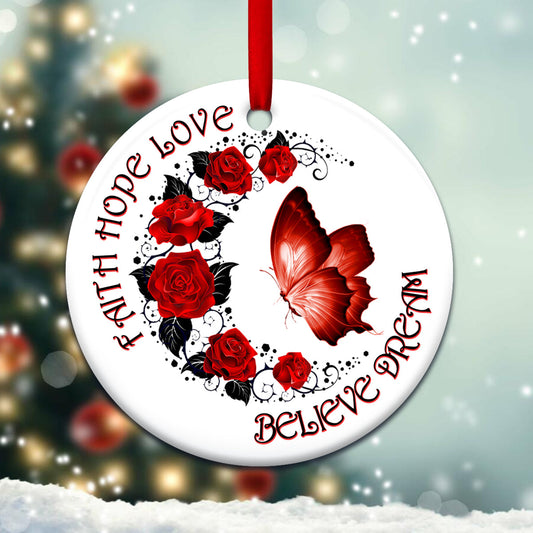 Faith Butterfly 3 Ceramic Circle Ornament - Decorative Ornament - Christmas Ornament