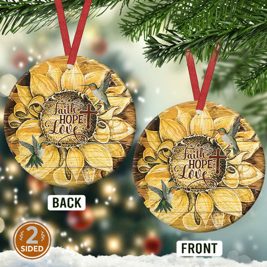 Faith Hope Love Sunflower Ceramic Circle Ornament - Decorative Ornament - Christmas Ornament