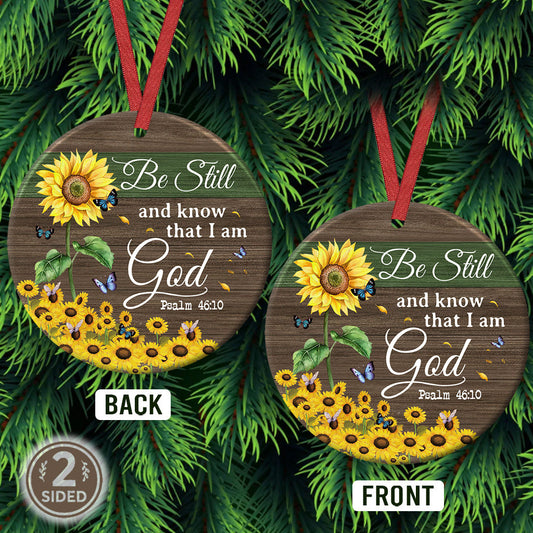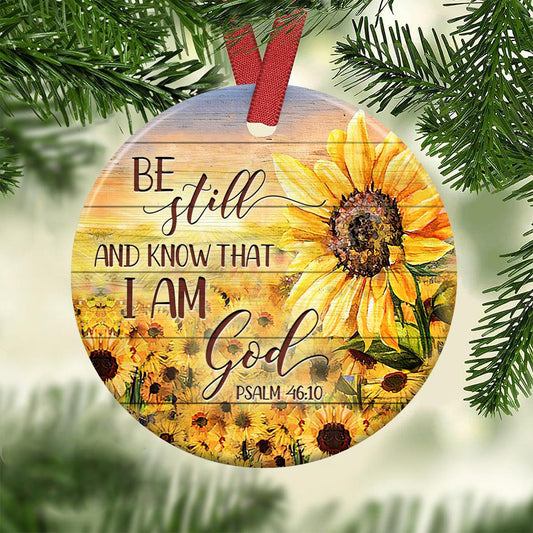 Faith I Am God Sunflower Ceramic Circle Ornament - Decorative Ornament - Christmas Ornament