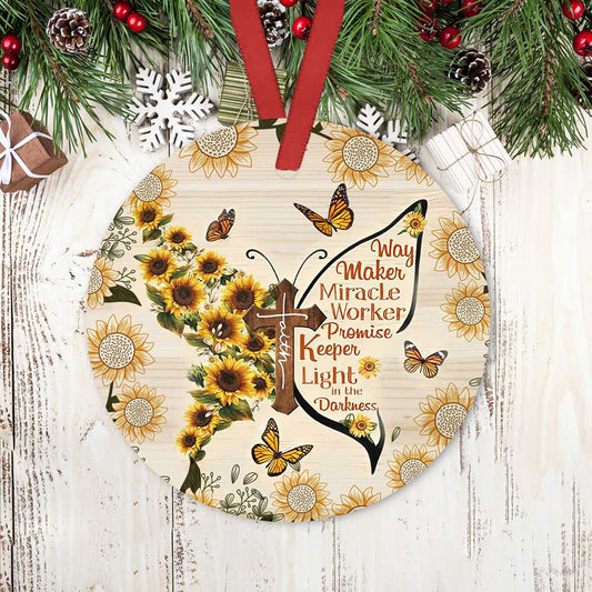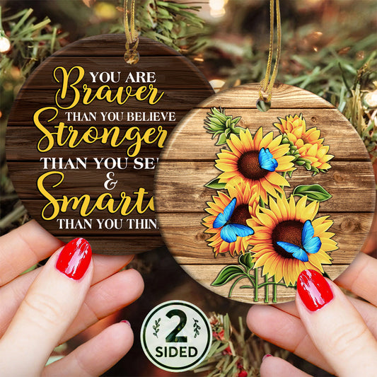 Faith Sunflower Butterfly Ceramic Circle Ornament - Decorative Ornament - Christmas Ornament