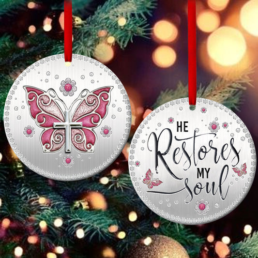 Faith Butterfly Ceramic Circle Ornament - Decorative Ornament - Christmas Ornament