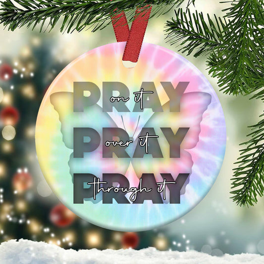 Faith Prayer Ceramic Circle Ornament - Decorative Ornament - Christmas Ornament