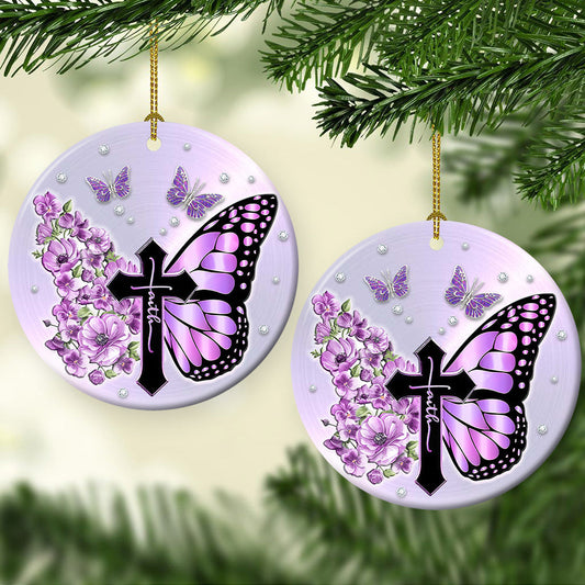 Faith Butterfly 5 Ceramic Circle Ornament - Decorative Ornament - Christmas Ornament