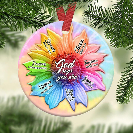 Faith Sunflower God Says Ceramic Circle Ornament - Decorative Ornament - Christmas Ornament