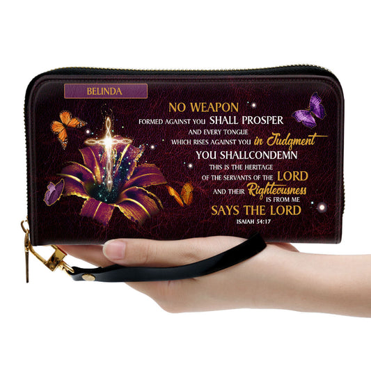 No Weapon Formed Against You Shall Prosper Isaiah 5417 Scripture Gifts For Religious Woman Clutch Purse For Women - Personalized Name