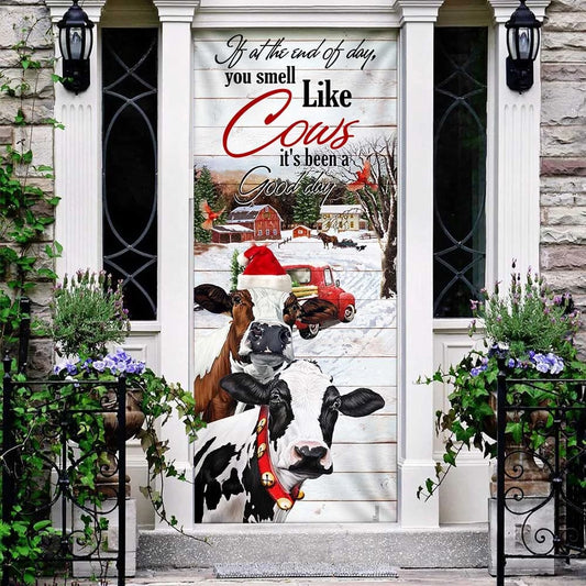If At The End Of Day You Smell Like Cows Door Cover - Farm Life Christmas Door Cover - Christmas Outdoor Decoration
