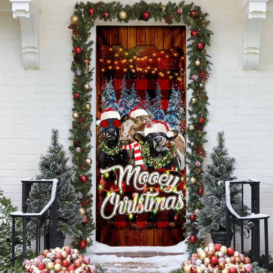 Happy Mooey Christmas Door Cover - Christmas Door Cover Decorations - Christmas Outdoor Decoration