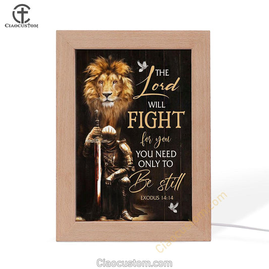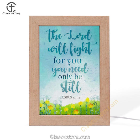Exodus 1414 The Lord Will Fight For You Christian Frame Lamp Prints - Bible Verse Wooden Lamp - Scripture Night Light