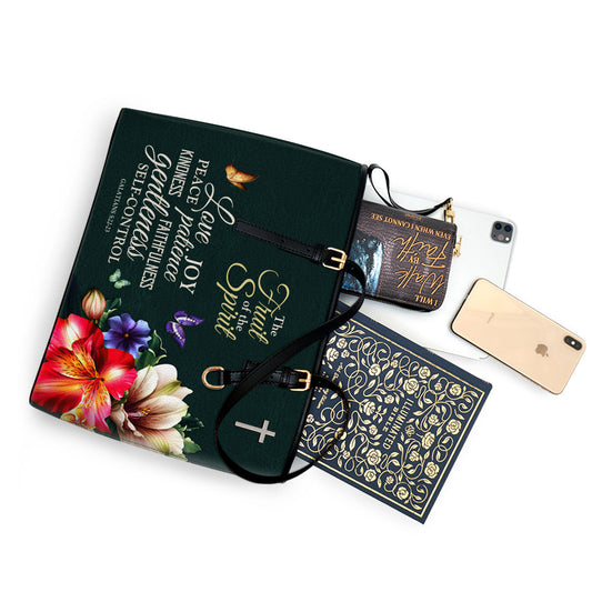 Galatians 522 23 The Fruit Of The Spirit Large Leather Tote Bag - Christ Gifts For Religious Women - Best Mother's Day Gifts
