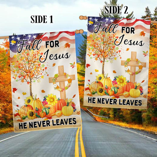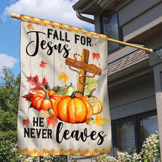 Fall Flag Fall For Jesus He Never Leaves Halloween Thanksgiving Flag