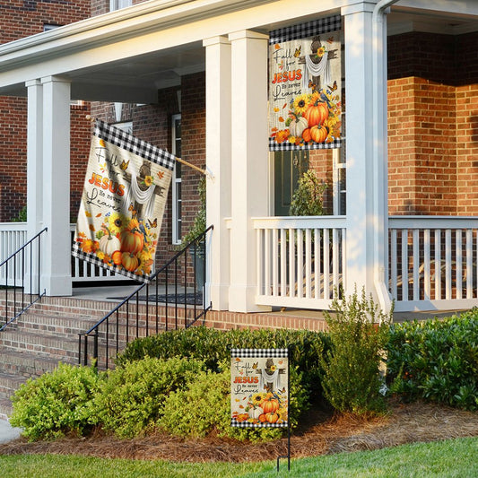 Christian Fall For Jesus He Never Leaves Thanksgiving Halloween Pumpkins Fall Flag
