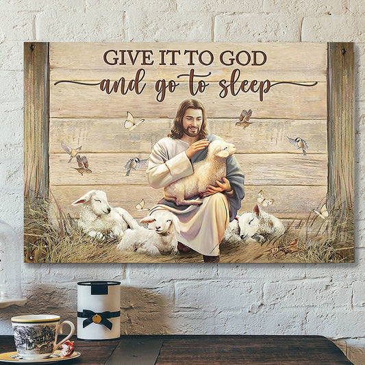 • Give It To God And Go To Sleep Canvas Wall Art - Jesus Canvas Wall Art - Jesus, Lambs, Butterfly, Hummingbird - Ciaocustom