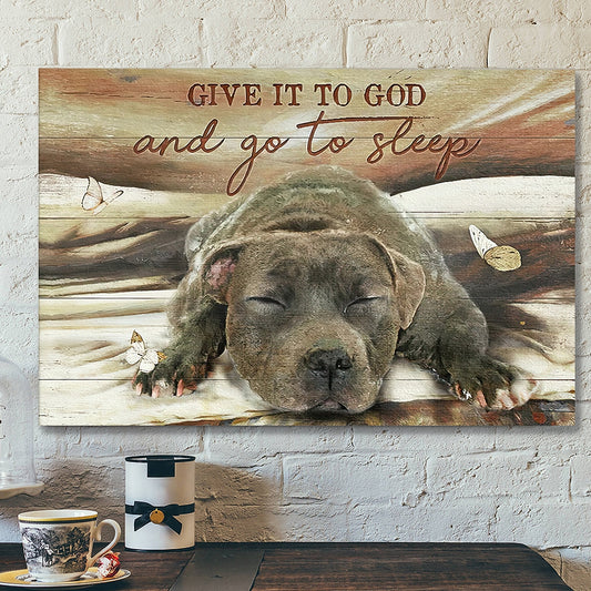 Give It To God And Go To Sleep Canvas Wall Art - Sleeping Pitbull Canvas - Christian Canvas Wall Art - Ciaocustom