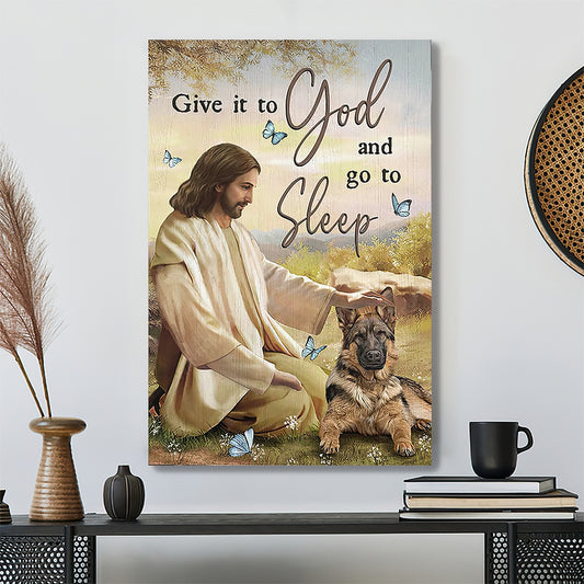 • Give It To God And Go To Sleep Wall Art - Jesus Painting & German Shepherd - Jesus Canvas Poster - Jesus Portrait Wall Decor - Ciaocustom