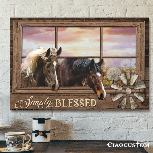 Simply Blessed - Horse - Bible Verse Canvas Wall Art - Christian Canvas Wall Art - Ciaocustom