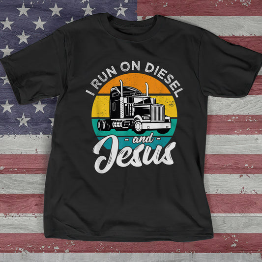 I Run On Diesel And Jesus T-Shirt - Trucker T-Shirt - Cool Christian Shirts For Men & Women - Ciaocustom