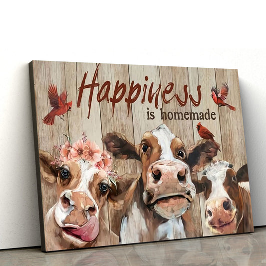 Happiness Is Homemade Cow Canvas Wall Art - Christian Canvas Wall Decor - Bible Verse Wall Art Canvas - Farmer Gift