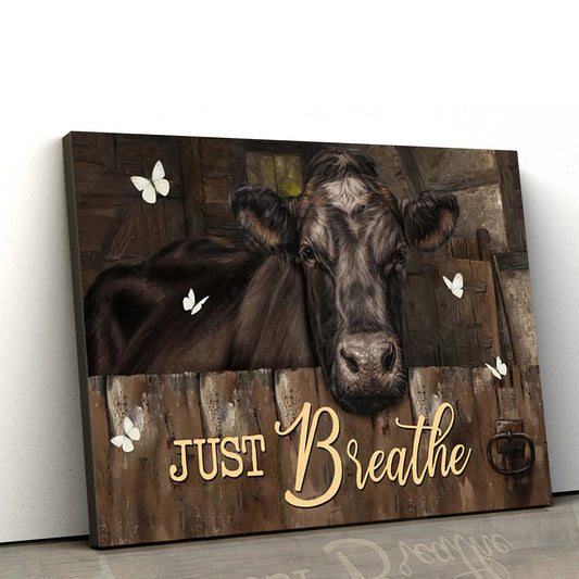 Just Breathe Cow Canvas Wall Art - Christian Canvas Wall Decor - Bible Verse Wall Art Canvas - Farmer Gift