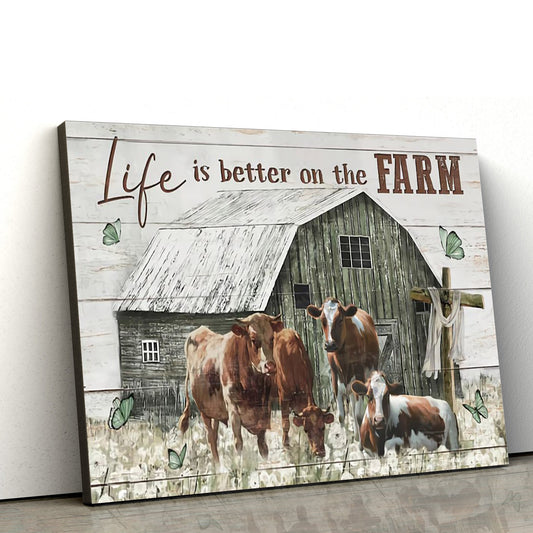 Life Is Better On The Farm Canvas Wall Art - Christian Canvas Wall Decor - Bible Verse Wall Art Canvas - Farmer Gift