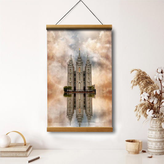 Millennial Reflection Salt Lake City Utah Temple Hanging Canvas Wall Art - Christian Wall Decor - Religious Canvas