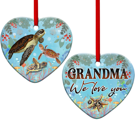 Turtle Grandma We Love You Heart Ceramic Ornament - Christmas Ornament - Christmas Gift