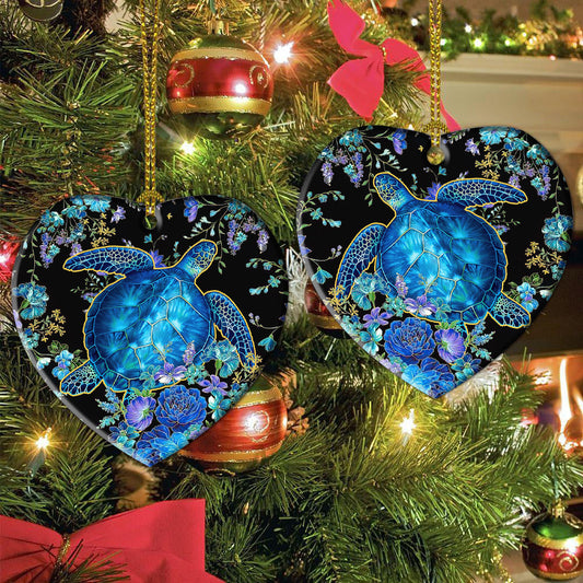Turtle Lover Heart Ceramic Ornament - Christmas Ornament - Christmas Gift
