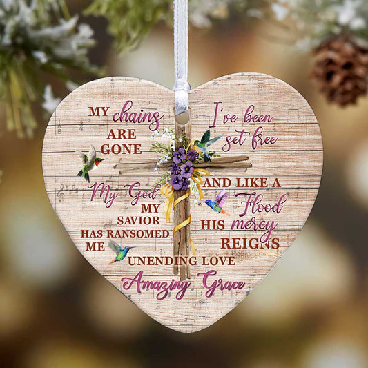 Wooden Style Faith My Chains Are Gone Heart Ceramic Ornament - Christmas Ornament - Christmas Gift