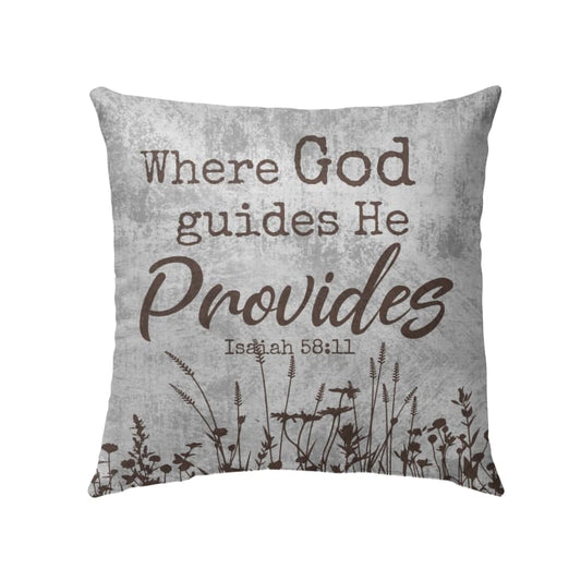 Where God Guides He Provides Isaiah 5811 Bible Verse Pillow