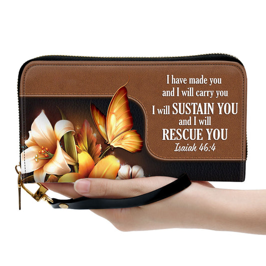 Women Clutch Purse - Isaiah 464 I Will Sustain You And I Will Rescue You - Personalized Lily Leather Clutch Purse - Faith Gifts From God For Christ Women