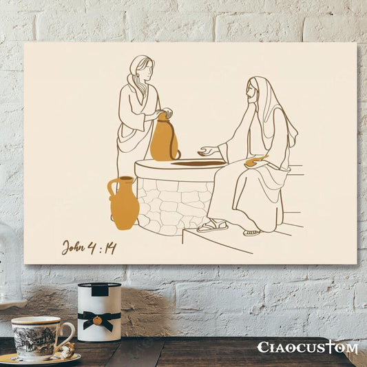 John 4 14 Jesus & the Woman of Samaria - Canvas Wall Art - Jesus Pictures - Christian Canvas Prints - Faith Canvas - Bible Verse Canvas - Ciaocustom