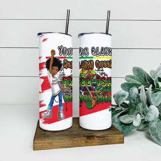 Young Black Melanin Queen - Juneteenth Tumbler - Stainless Steel Tumbler - 20 oz Skinny Tumbler - Tumbler For Cold Drinks - Ciaocustom