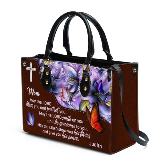 May The Lord Bless You And Protect You Leather Bag - Custom Name Leather Handbag For Mom - Christian Gifts For Women
