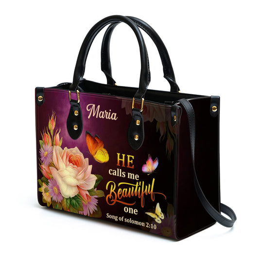 Solomon 2 10 He Calls Me Beautiful One Leather Bag - Personalized Leather Bible Handbag - Christian Gifts for Women