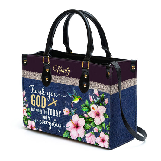 Thank You God Not Only For Today But For Everyday Flower And Humming Bird Leather Bag - Personalized Leather Bag for Christian Women