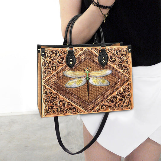 Dragonfly Flowers Lover Leather Bag - Gifts Dragonfly Lovers - Women's Pu Leather Bag