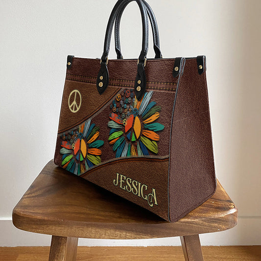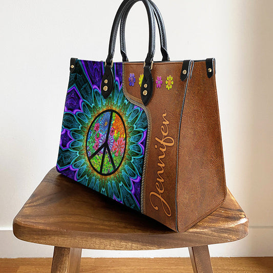 Personalized Hippie Pattern Love Peace Leather Bag - Women's Pu Leather Bag - Best Mother's Day Gifts