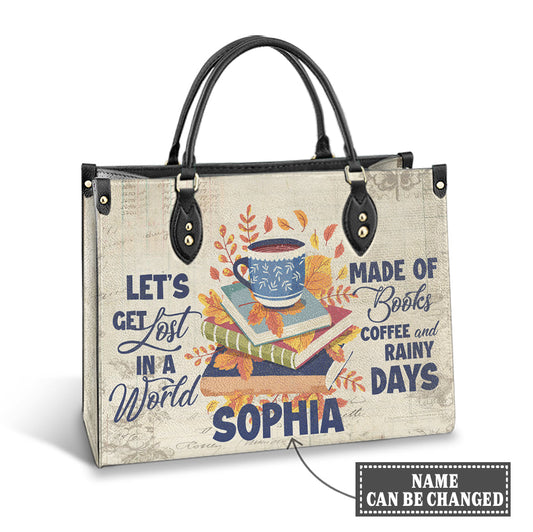 Book Lets Get Lost In A World Made Of Books Coffee And Rainy Days Leather Bag - Best Gifts For Book Lovers - Women's Pu Leather Bag