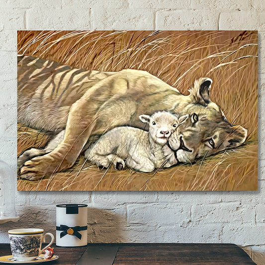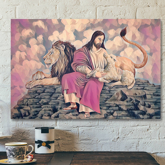 Scripture Canvas Wall Art - Jesus Christ Poster - Christian Canvas Art - Lion And Jesus Beside Canvas Poster - Ciaocustom