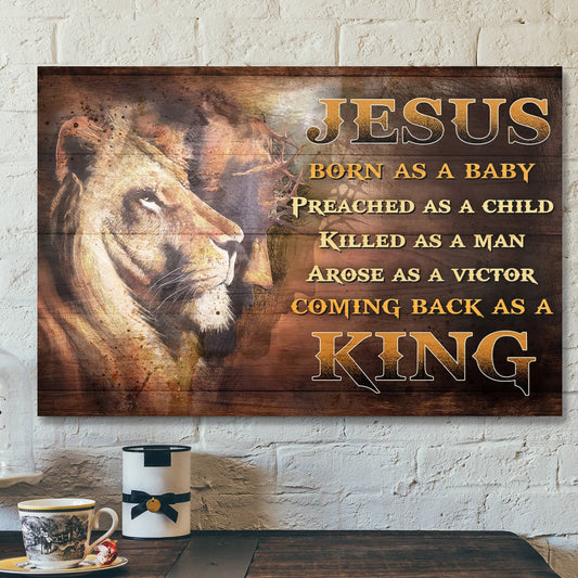 God Jesus Landscape Canvas Prints - God Wall Art - Awesome Lion - Born As A Baby, Come Back As A King - Ciaocustom