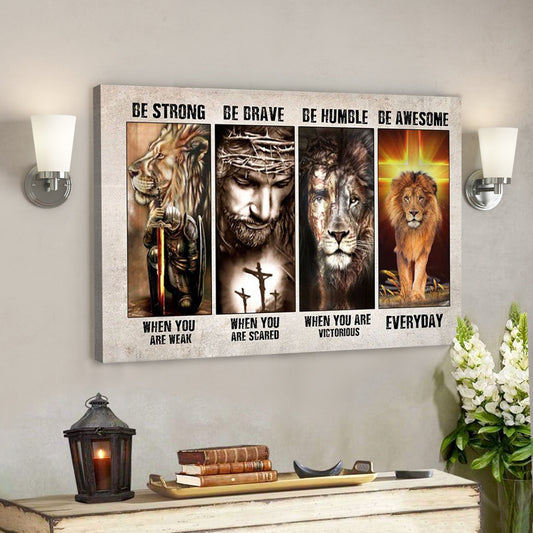 Be Strong & Courageous Joshua 1:9 - Christ And Lion Picture - Jesus Lion Canvas - Bible Verse Canvas Wall Art - Scripture Canvas - Ciaocustom