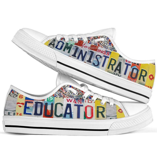Administrator Educator License Plates Low Top Shoes License Plate Shoes for Mens, Teacher Shoes, Low Top Sneakers