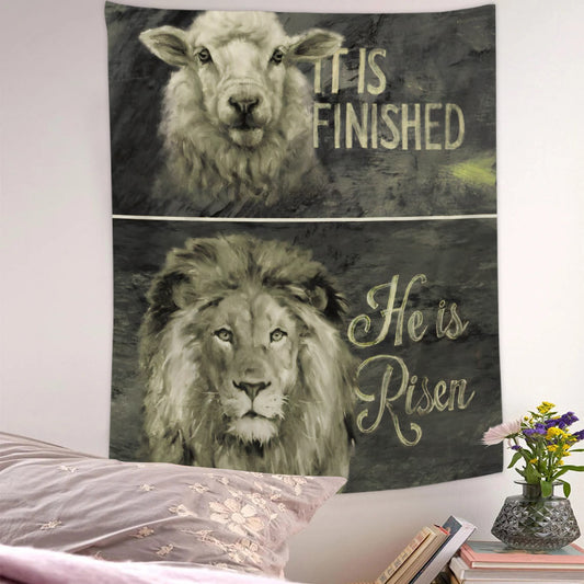 He Is Risen, It Is Finished Tapestry - Lion And Lamb - Bible Verse Wall Tapestry - Christian Tapestry - Religious Tapestry Wall Hangings - Ciaocustom